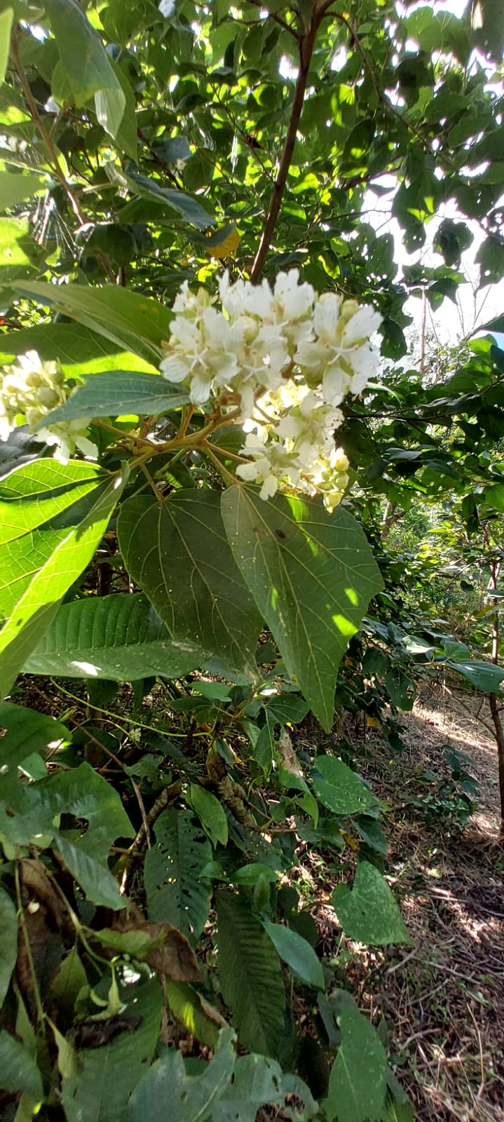 खोड सरळ वाढणारे, तपकिरी राखाडी रंगाचे असते. आठदहा फुटाच्या उंचीवर फांद्या फुटलेल्या असतात. पानं बुडा कडे बदामाच्या आकाराची शेंड्याकडे कडांना शेंड्याच्या बाजुला कोन निघालेले व शेंडा टोकदार असते. पानांना वरच्या बाजूस हलकी लव असते. पानं खालच्या बाजूने फिकट हिरव्या राखाडी, रंगाची व स्पष्ट शिरा असलेली असतात. फुलं पावसाळ्यात ऑगस्टमध्ये येण्यास सुरुवात होते. साधारण ऑक्टोबर पर्यंत फुलांचा भर सुरू असतो. पाच केसाळ युक्त पाकळ्या असलेली मध्यभागी नलिका युक्त व पाच जाडसर पुंकेसर असलेले पांढरे फुलं व काही झाडांवर मध्यभागी लालसर छट्टा असलेले फुलं दिसून येतात. मातीच्या सुपेकते नुसार पानगळ होते. बर्याच ठिकाणी हिवाळ्याच्या शेवटी झाड पर्णहीन होते. पर्णहीन झाडावर चार पसरलेले पंख व मध्यभागी बोंड निघालेले,भिंगरीसारखी अर्धा इंच छोटी, पण सुंदर रचनेची फळ, लटकलेली असतात. फळ नोव्हेंबर, डिसेंबर मध्ये परीपक्व होतात. परिपक्व फळ पुढील बराच काळ झाडावर लटकलेली असतात.
